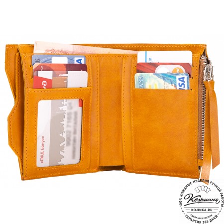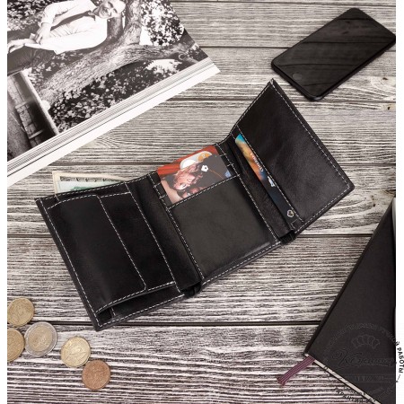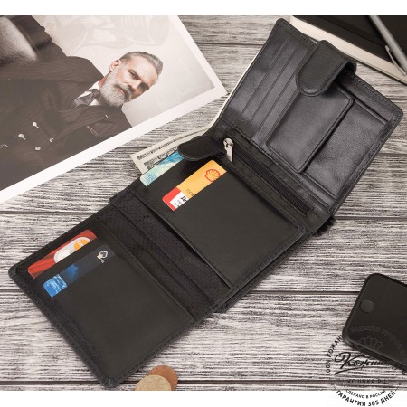 Портмоне вместит в себя много наличных денег, монеты в специальном отделении на молнии, пластиковые карты и даже чеки от покупок в магазинах. Все отделения с подкладом, аккуратно прострочены.