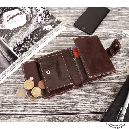 Кожаное портмоне Санкт-Петербург (коричневое) - полноценное вместительное портмоне высокого качества исполнения! Эта модель портмоне удобно закрывается на магнитах.