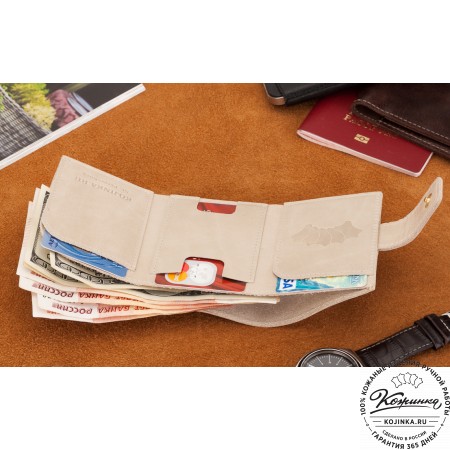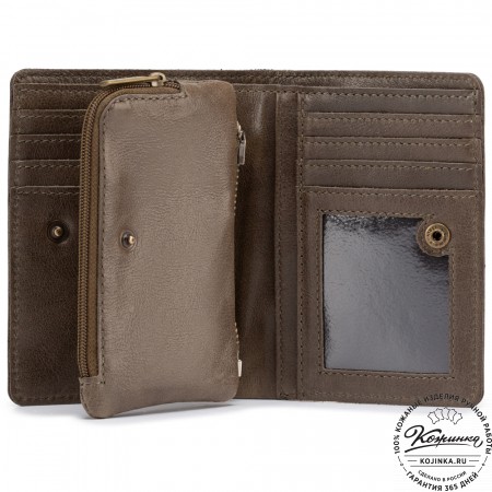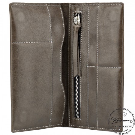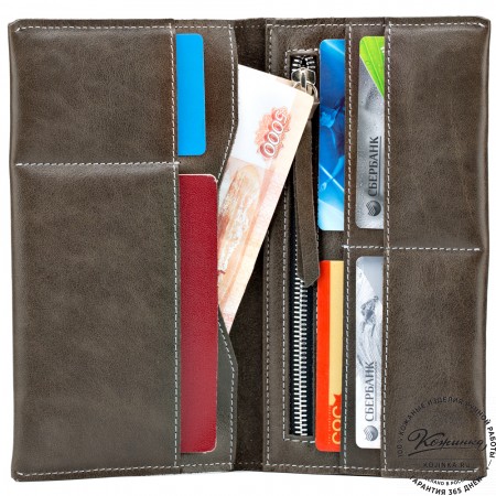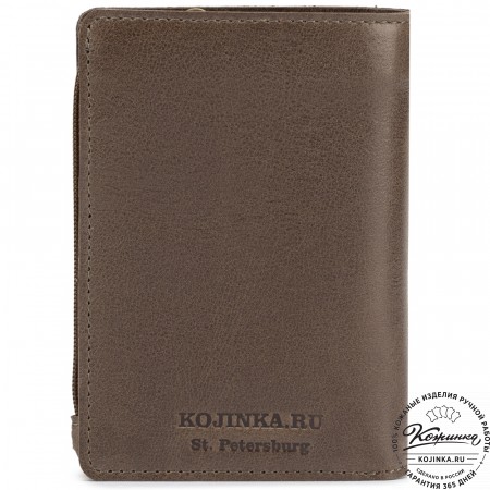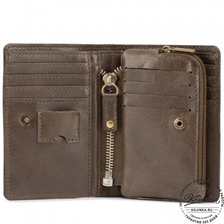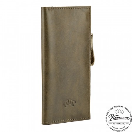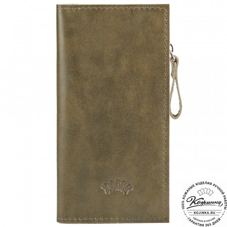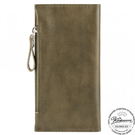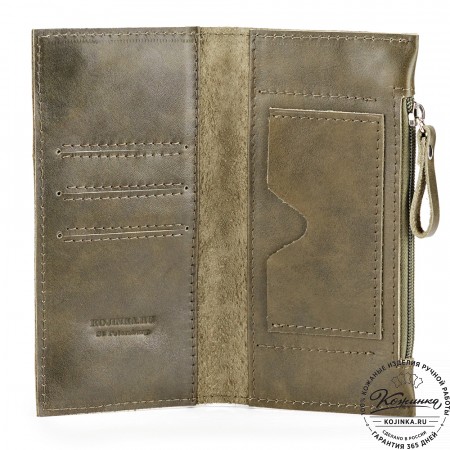Кожаное портмоне "Пушкин" (оливковое) - вместительное стильное портмоне из мягкой качественной кожи.