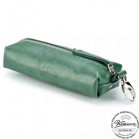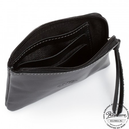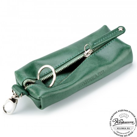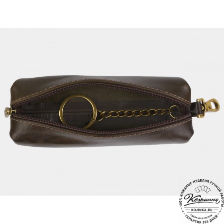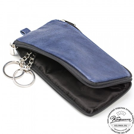 Закрывается ключница на молнию, внутри большое металлическое кольцо для ключей.