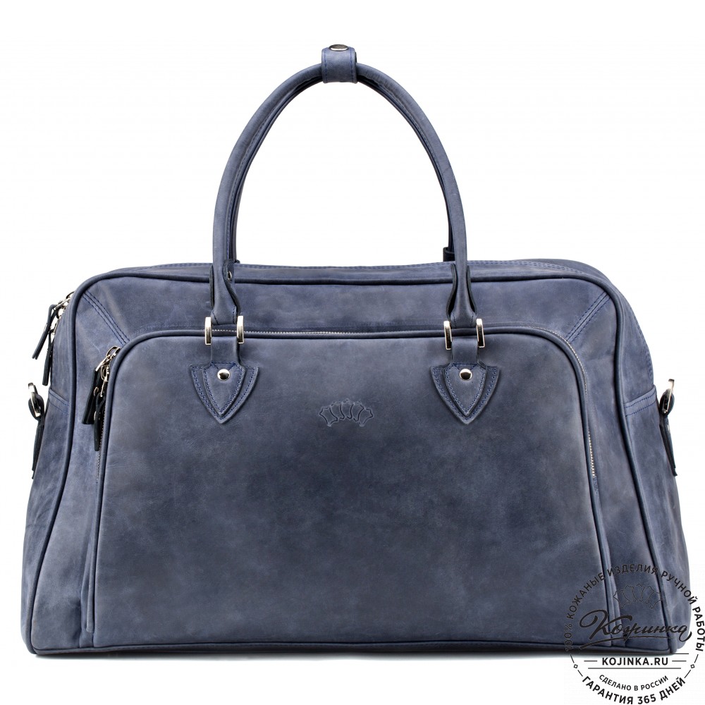 Кожаная дорожная сумка "Бруклин" (синий крейзи) – стильная дорожная сумка из натуральной кожи.