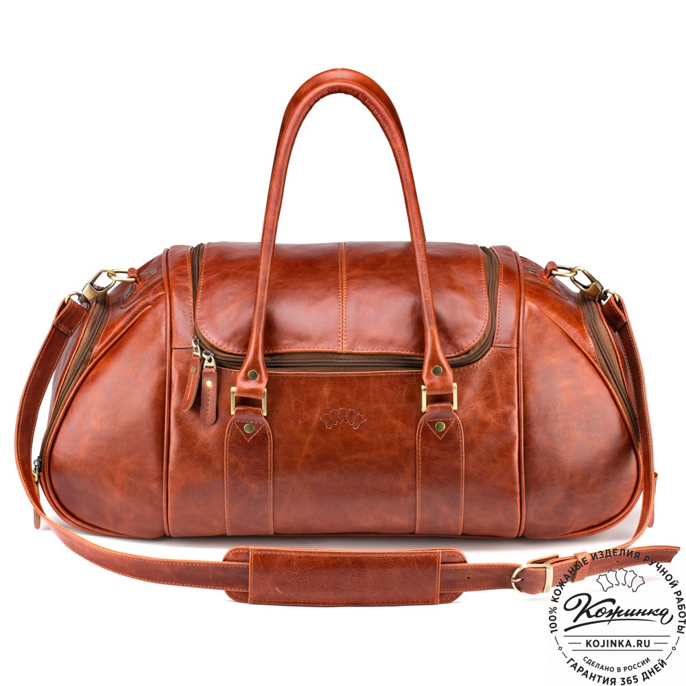 Кожаная дорожно-спортивная сумка "Дональд" (рыжий антик) – вместительная и удобная сумка для спорта и поездок.