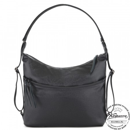 Кожаный рюкзак-сумка "Микки" (черный) - уникальная небольшая сумка, которая легко превращается в рюкзак. Это очень удобно!