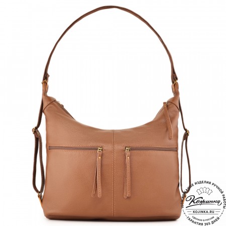 Усиленные кожаные ремни на плечо легко превращаются в лямки рюкзака. Носить такую сумку-рюкзак можно как сумку, как рюкзак на одну лямку и на 2 лямки.