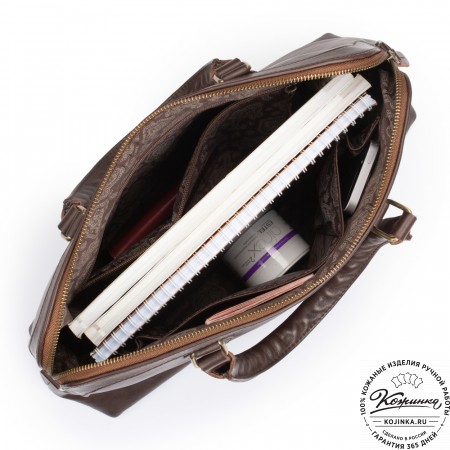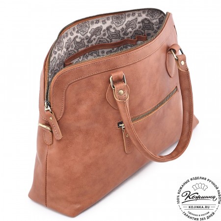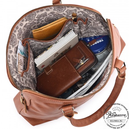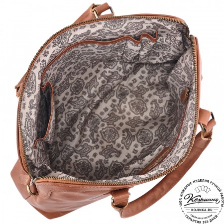 Сумка изготовлена из мягкой натуральной кожи высокого качества. Подкладка внутри выполнена из прочной ткани с узором.