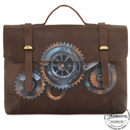 Портфель изготовлен из толстой отборной матовой кожи высокого качества.