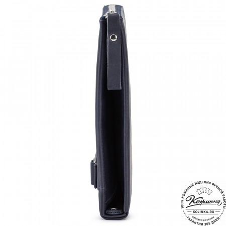 Во втором отделении секция для бумаг формата А4, на лицевой стороне которой, карман и восемь слотов для пластиковых карт или визиток. На противоположной стороне еще два открытых кармана.