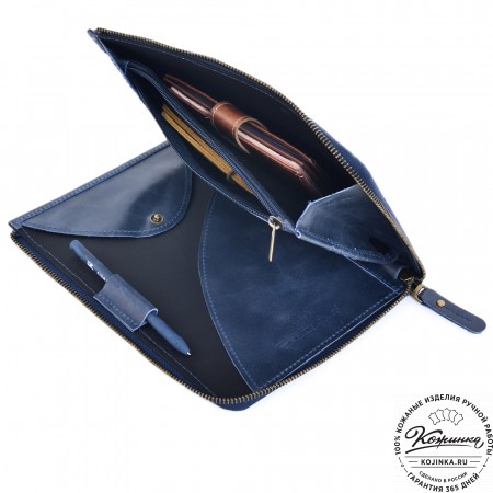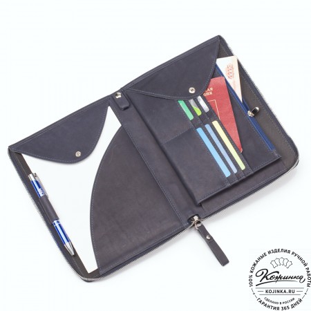 Папка изготовлена из высококачественной натуральной кожи и прочной фурнитуры.