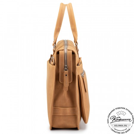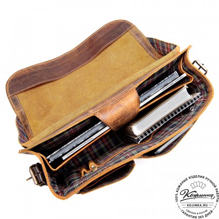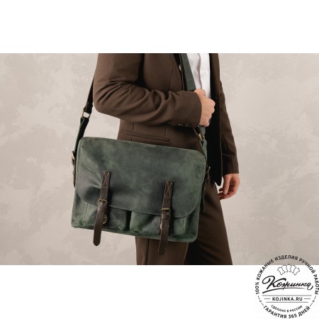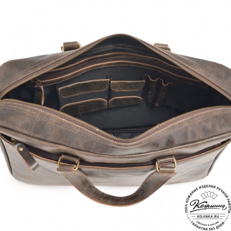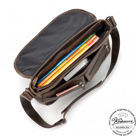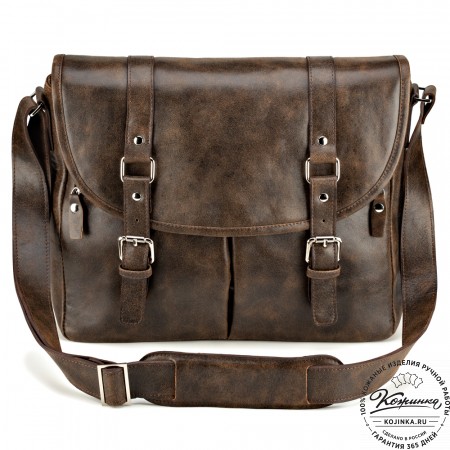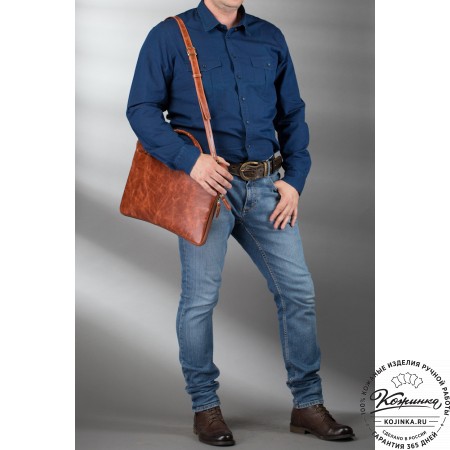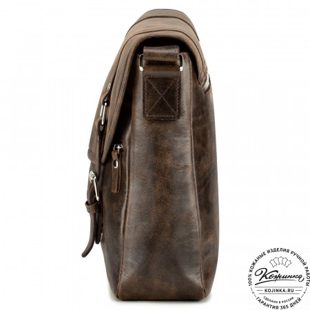 На фото модели представлена сумка "Марк" коричневый крейзи.