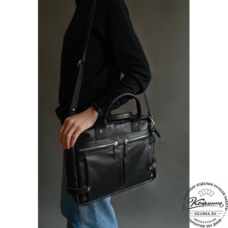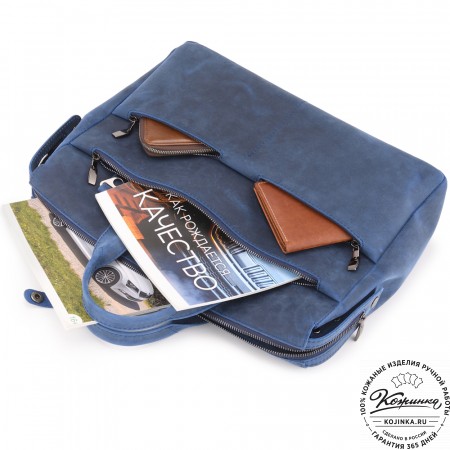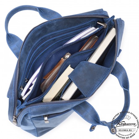 Такая сумка вместит в себя ноутбук, и для него есть специально отведенное отделение, а также большое количество бумаг и документов. Два основных отделения, разделенных перегородкой на молнии, карман для важных вещей и документов на молнии внутри на передней стенке.