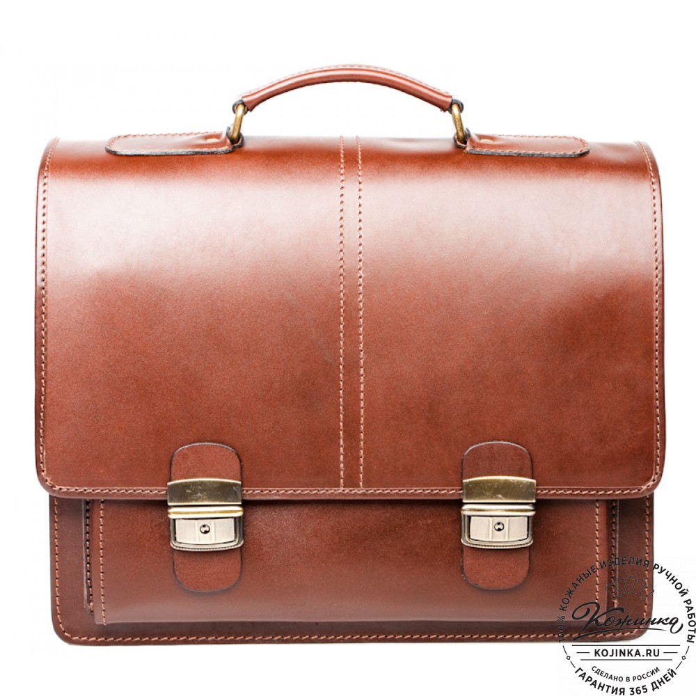 Портфель из 100% натуральной толстой кожи, закрывается на удобные классические пряжки. Внутри 2 удобных отдела разделённых перегородкой пополам. В перегородке имеется карман на молнии и удобные кожаные кармашки для ручек и мелких вещей. На передней стенке имеется два накладных кожаных кармана.