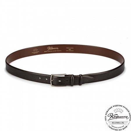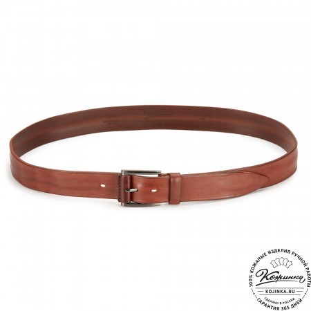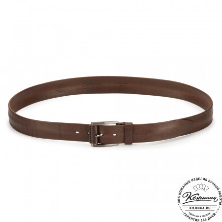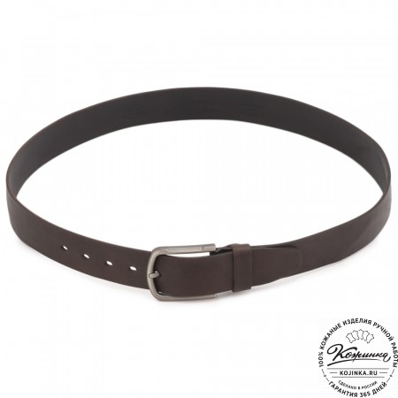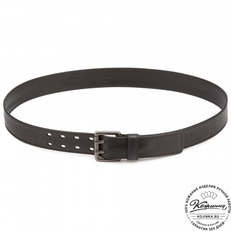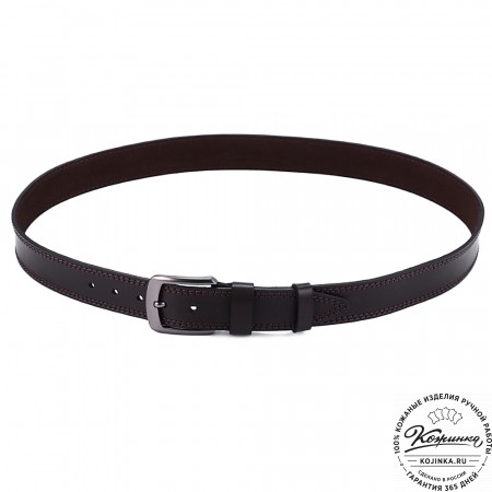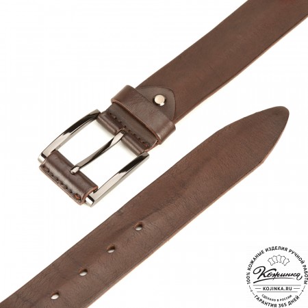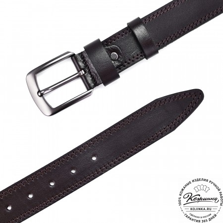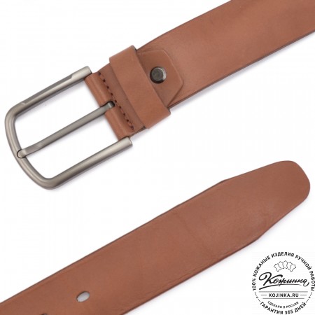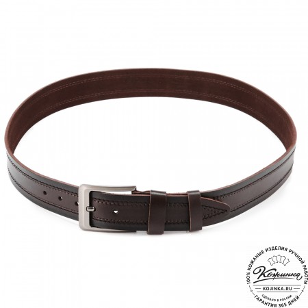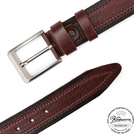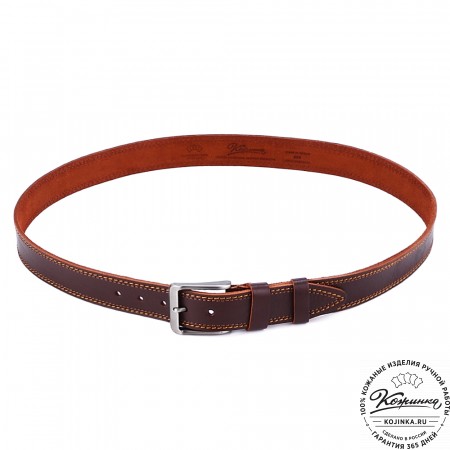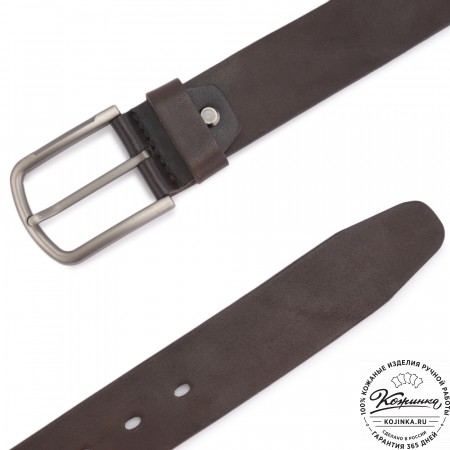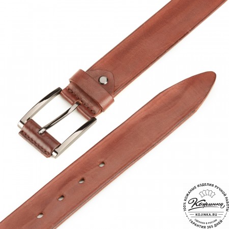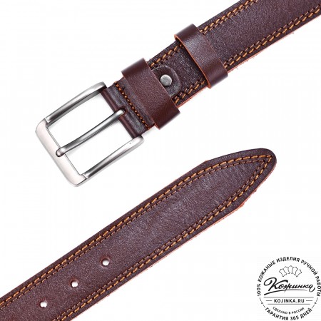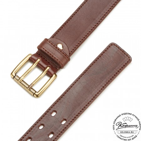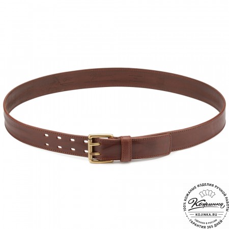 Толстая грубая шорно-седельная кожа высокого качества, удобная пряжка из латуни, лаконичная прошивка по всей длине ремня.