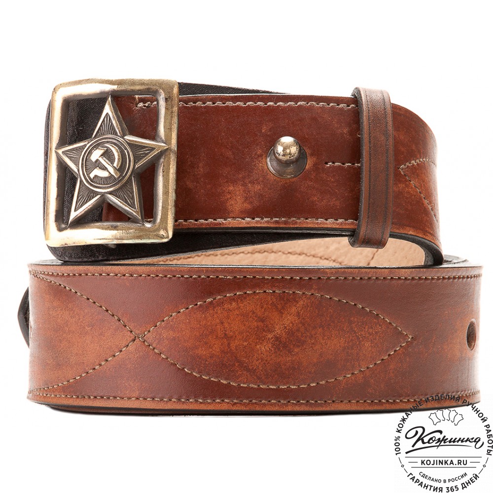 Кожаный мужской ремень Комбат (коричневый) - офицерский ремень.