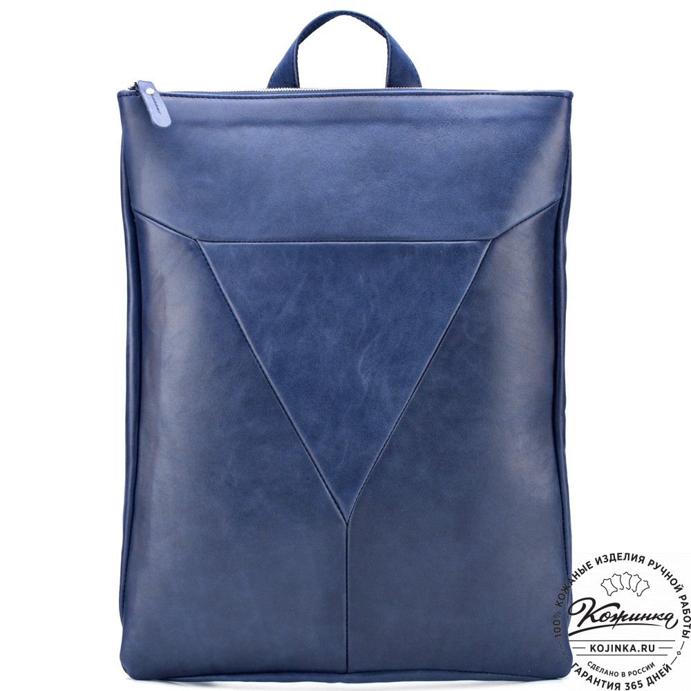 Кожаный рюкзак "Ария" (синий) - стильный городской рюкзак с оригинальным дизайном и застежкой на молнии.