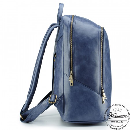 На моделях представлены рюкзаки "Дрезден" синего цвета из кожи Антик.