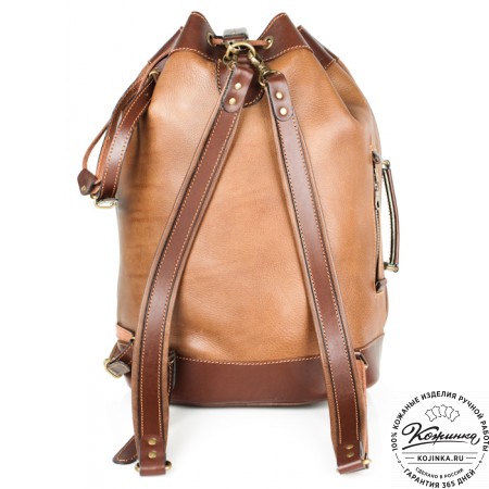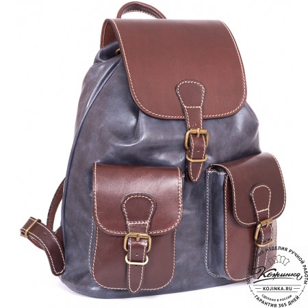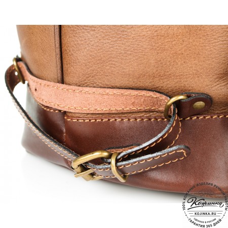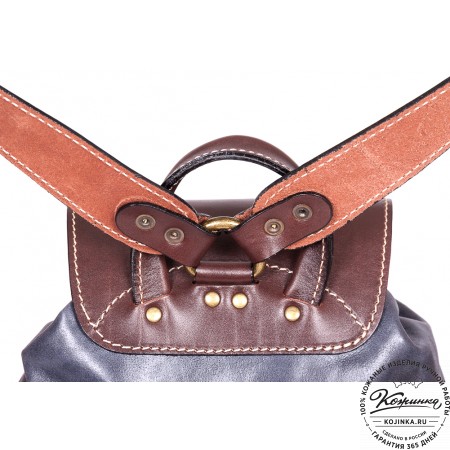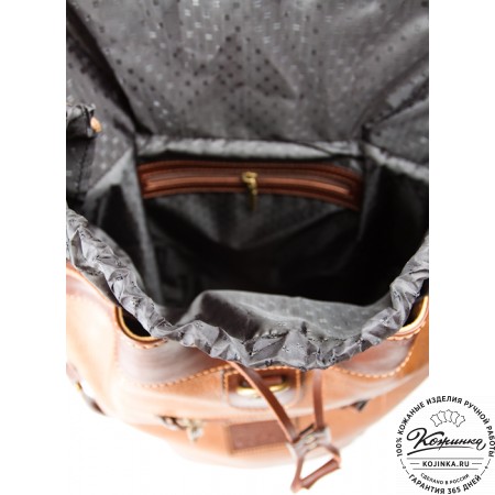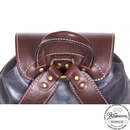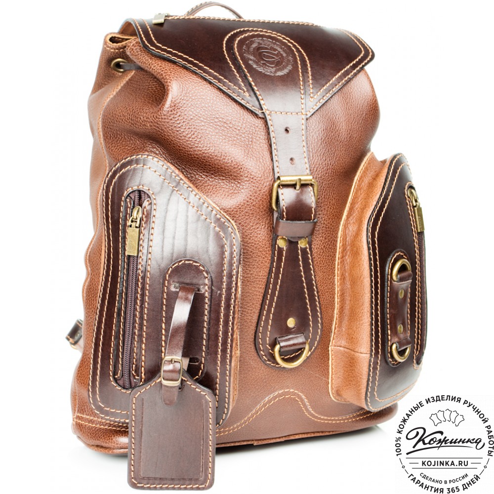Рюкзак выполнен из комбинации толстой мягкой кожи и жёсткой кожи на клапане рюкзака.