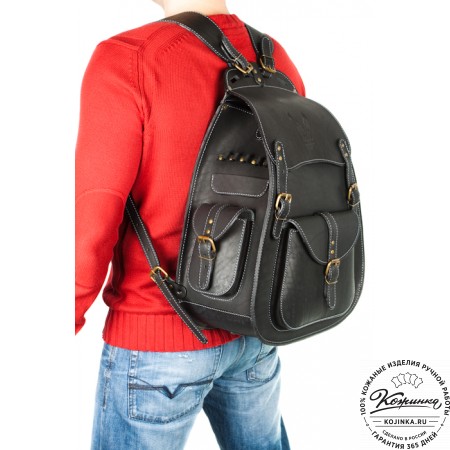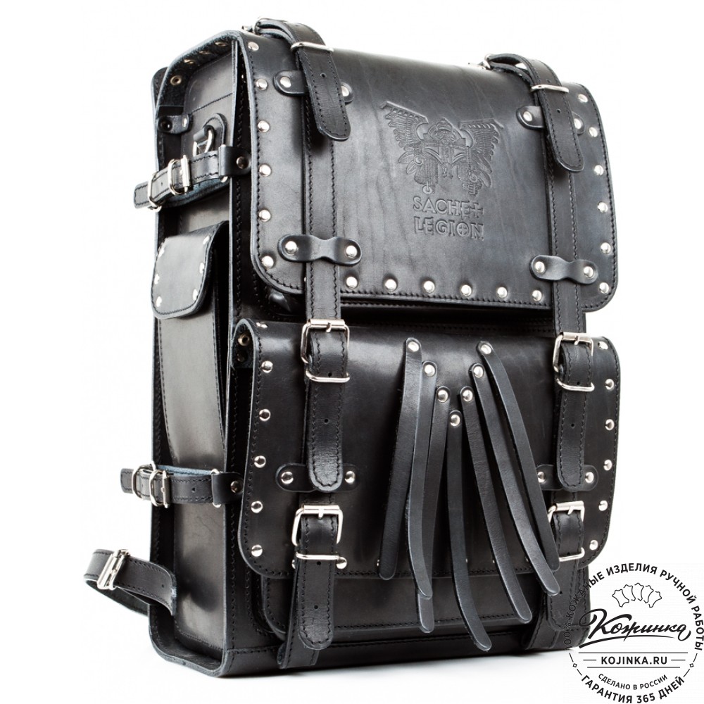Мужской кожаный рюкзак "Легион-Харлей" (черный) - мощь, универсальность, оригинальность и изысканность для истинных ценителей!