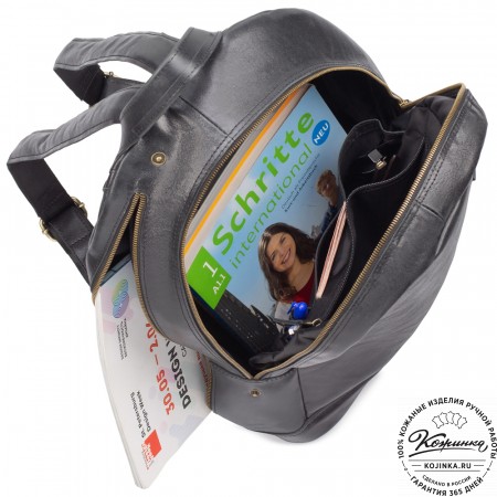 Кожаный рюкзак-сумка "Лесснер" (черный) – практичная многофункциональная модель-трансформер, городской рюкзак и деловая сумка в одном изделии!