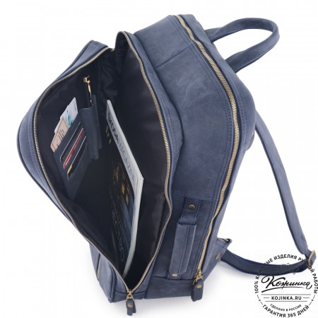 Основное отделение закрывается на молнию. Внутри два больших кармана под формат А4, на молнии и открытый, и несколько небольших открытых карманов для документов, телефона и ручек.