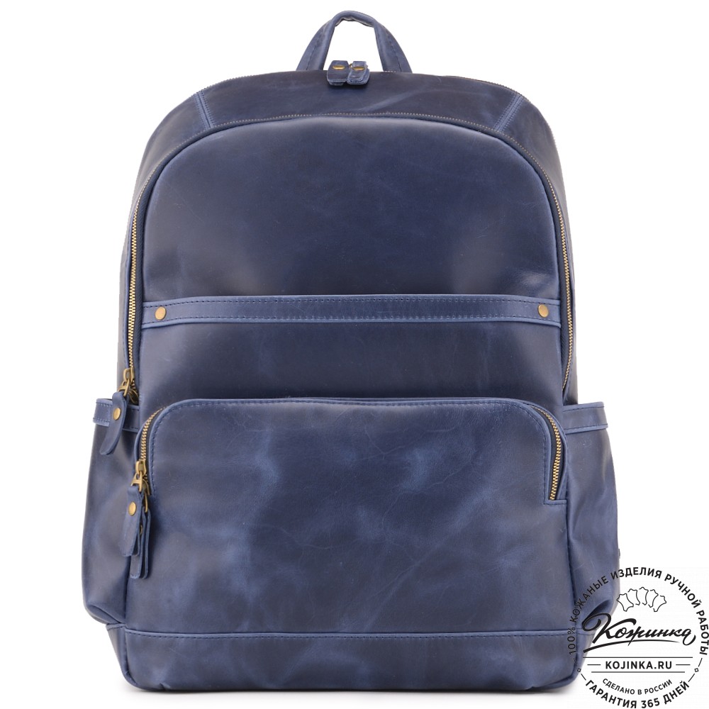 Мужской кожаный рюкзак "Гудвин" (синий воск) - большой и вместительный рюкзак с двумя автономными отделениями. Практичная и удобная модель унисекс с отделением для ноутбука и удобным карманами.