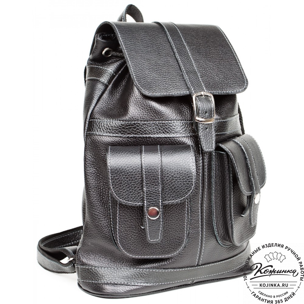 "Классика" - изящный женский рюкзак из чёрной кожи.