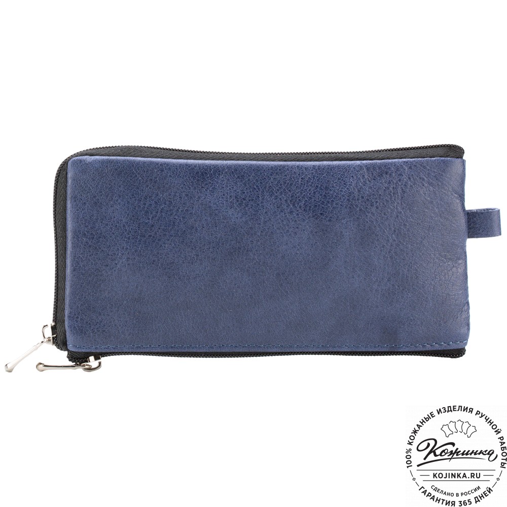 Кожаная ключница "Шанхай" (синяя) – большая удобная ключница с дополнительным кармашком на молнии.