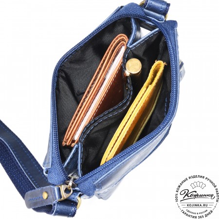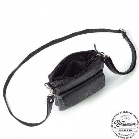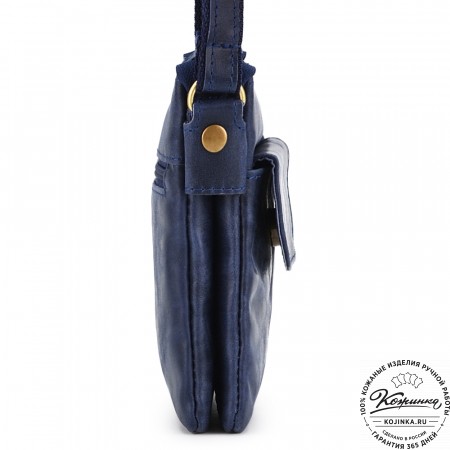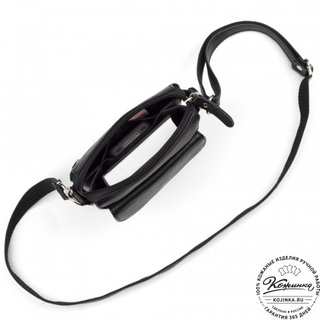 Плечевой ремень выполнен из кожи и усилен стропой для прочности. Ремень регулируется по длине.