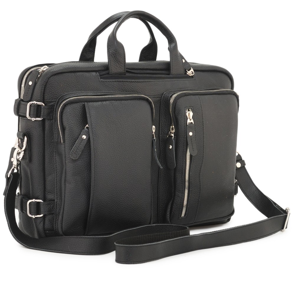 Кожаная сумка-рюкзак "Бигмэн" – многофункциональная мужская сумка-трансформер. Универсальная модель 3 в 1, в которой сочетаются деловая сумка, рюкзак и сумка через плечо.